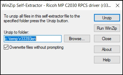 Make a note of the name in the “Unzip to folder” box e.g. c:/temp/r33399en