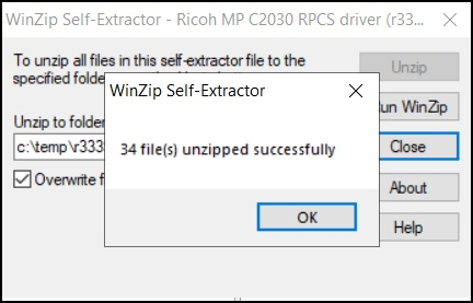 Download the driver, “Ricoh MP C2030 RPCS driver (r33393en).exe”, via FTP from the folder