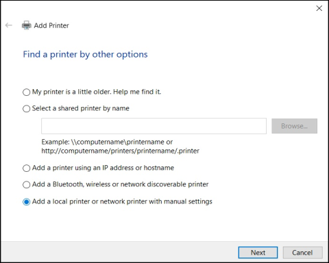 Check “Add a local or network printer with manual settings”