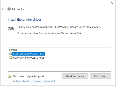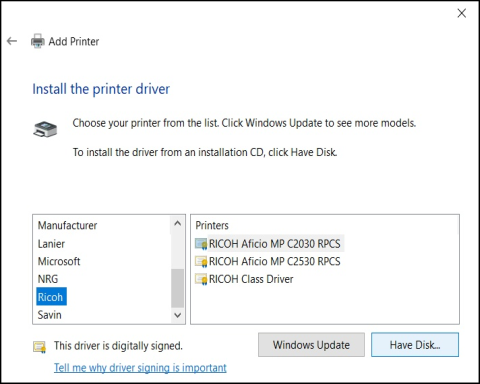 Select the first “Ricoh printer” and left-click [Have Disk]