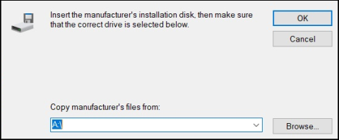 Do NOT select a printer listed on right but choose and left-click [Have Disk]