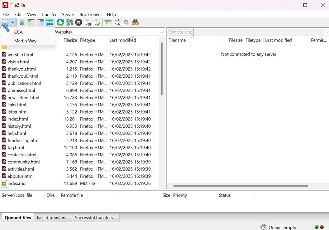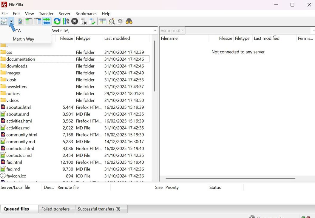 I then downloaded all the folders and files from the website to below that top-level folder using FileZilla, the ftp program described in Appendix 2.