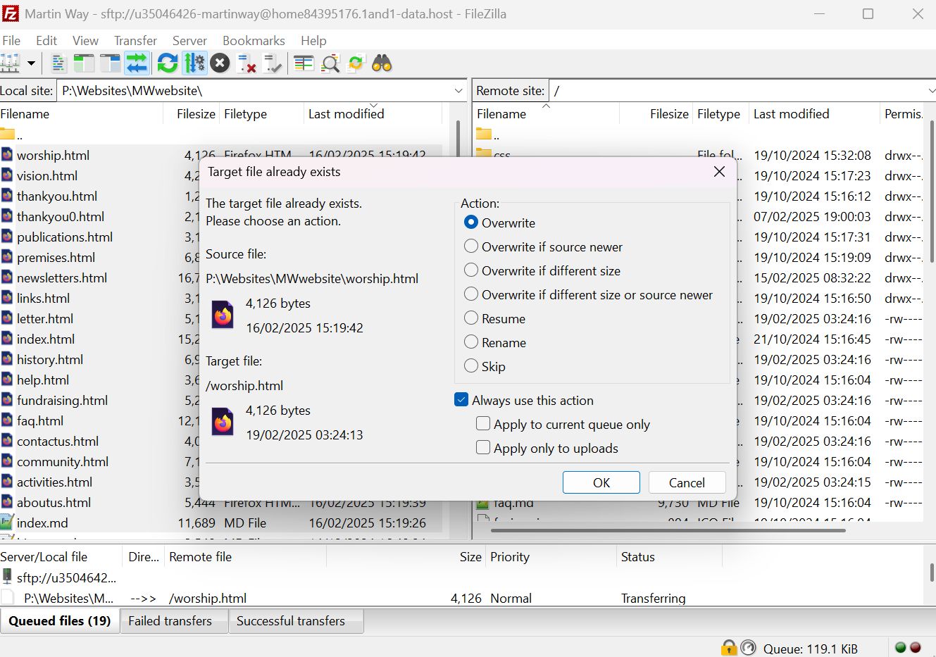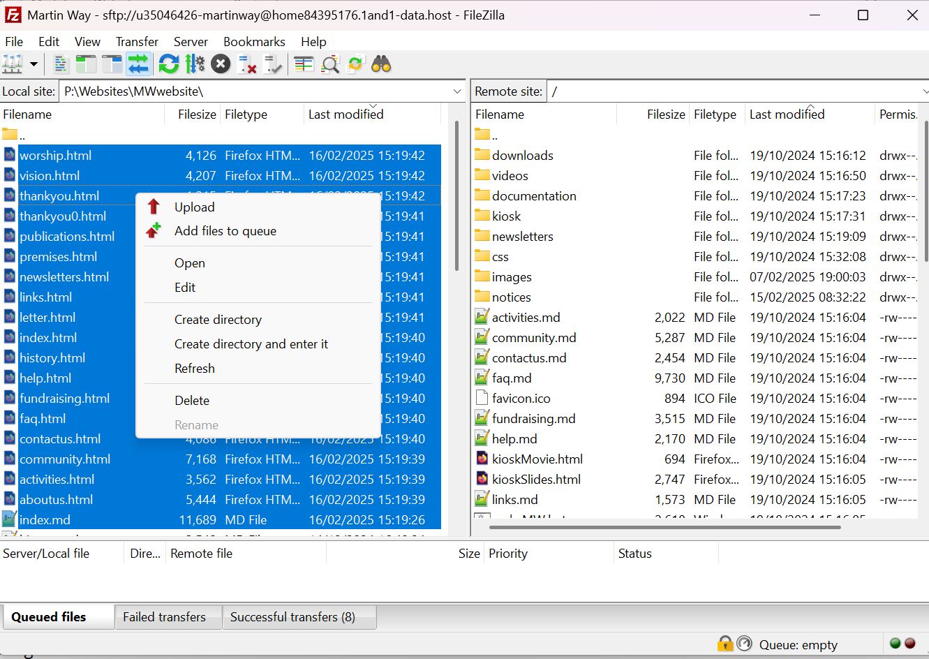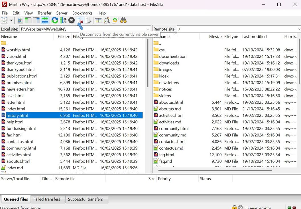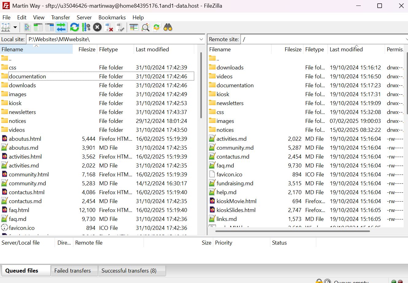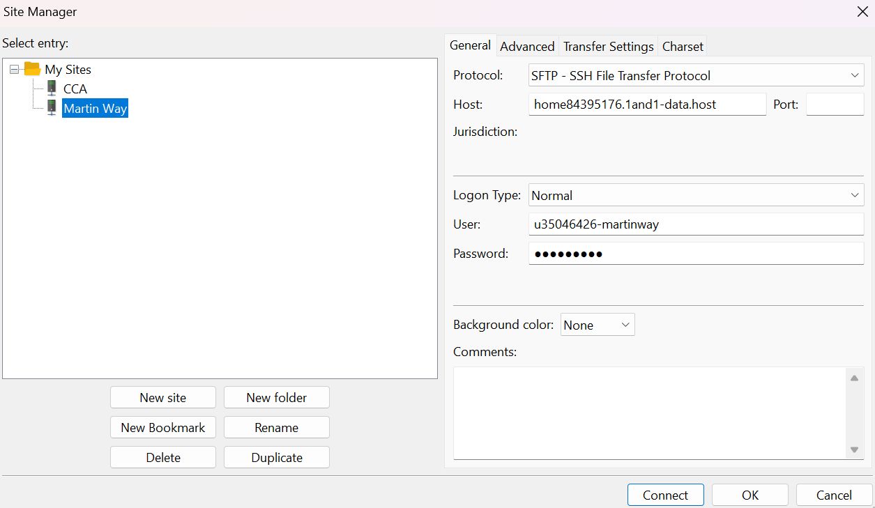 This gave me all the website folders and files so that I could test changes locally before uploading the changed files back to the live website, again using the ftp program.