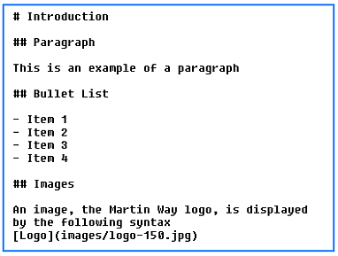 This document, the fifth and last in my series of documents, explains my rationale for moving away from traditional hand-coded websites to those generated from the plain text Markdown system. This document is written using the Typora Markdown editor. It is then exported to a PDF file, Markdown Websites.pdf, ready for viewing, printing and uploading to the Documentation sub-folder of the Martin Way website.